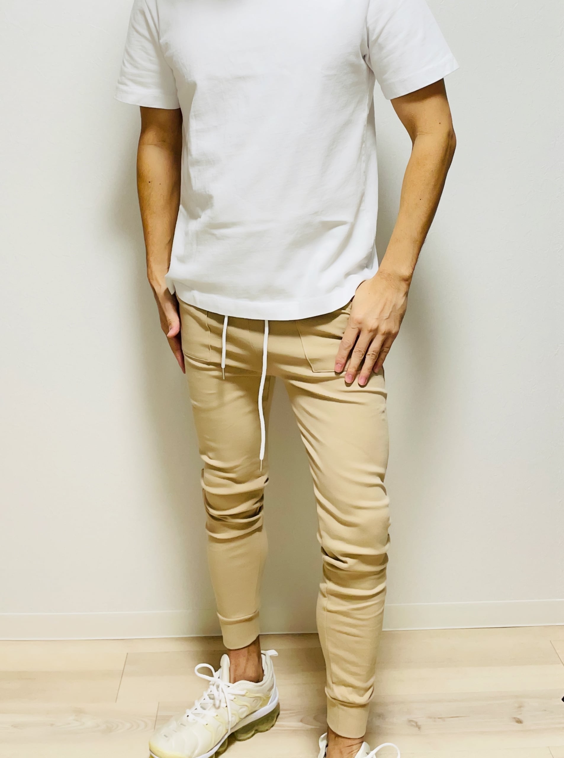 商品開発の段階で、ご要望が特に多かったビタビタにタイトなスーパースキニースウェットパンツがついに完成しました。元々JGG.Menが立ち上がった基本コンセプトとして、ボディラインは活かした格好良いパンツをテーマに掲げましたが、そのど真ん中の商品です。